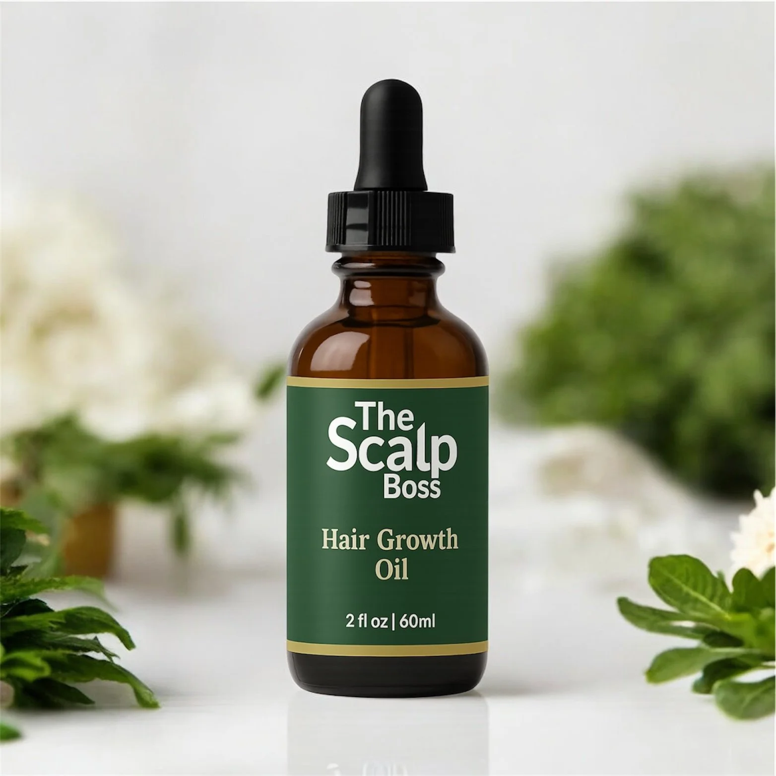 The Scalp Boss Hair Growth Oil is a powerful, nutrient-rich formula designed to strengthen your strands, nourish your scalp, and revive weak or thinning hair. Whether you're dealing with breakage, postpartum shedding, alopecia, or stress-related thinning — this oil helps you regrow with confidence.